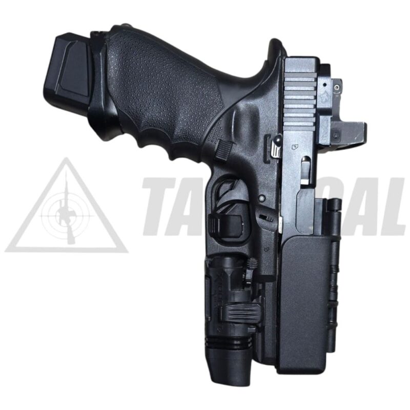 En el cine y la televisión, las fundas de polímero para armamento corto, se utilizan para agregar realismo y autenticidad a las escenas de acción y suspenso destacando la actividad o el estilo de los personajes, su utilización refleja significativamente el esmero de la producción agregando un alto aporte de profesionalismo.